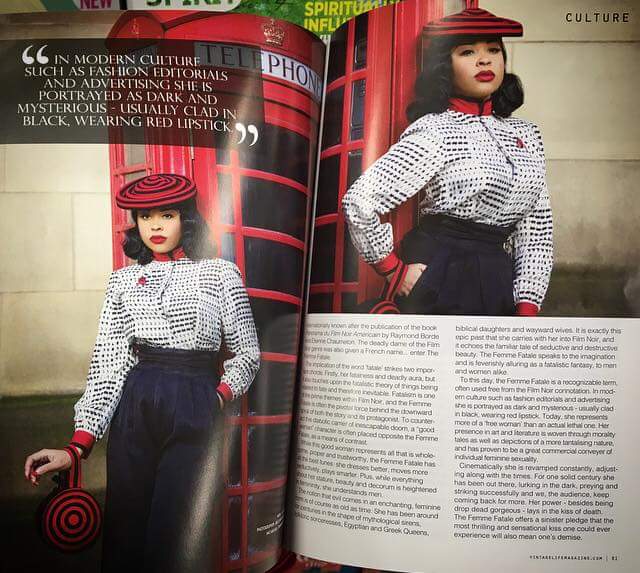 To this day, the Femme Fatale is a recognizable term, often used free from the Film Noir connitation. In modern culture such as fashion editorials and advertising she is portrayed as dark and mysterious- usually clad in black,wearing red lipstick. Today she represents more of a ‘free woman’than a actual lethal one.